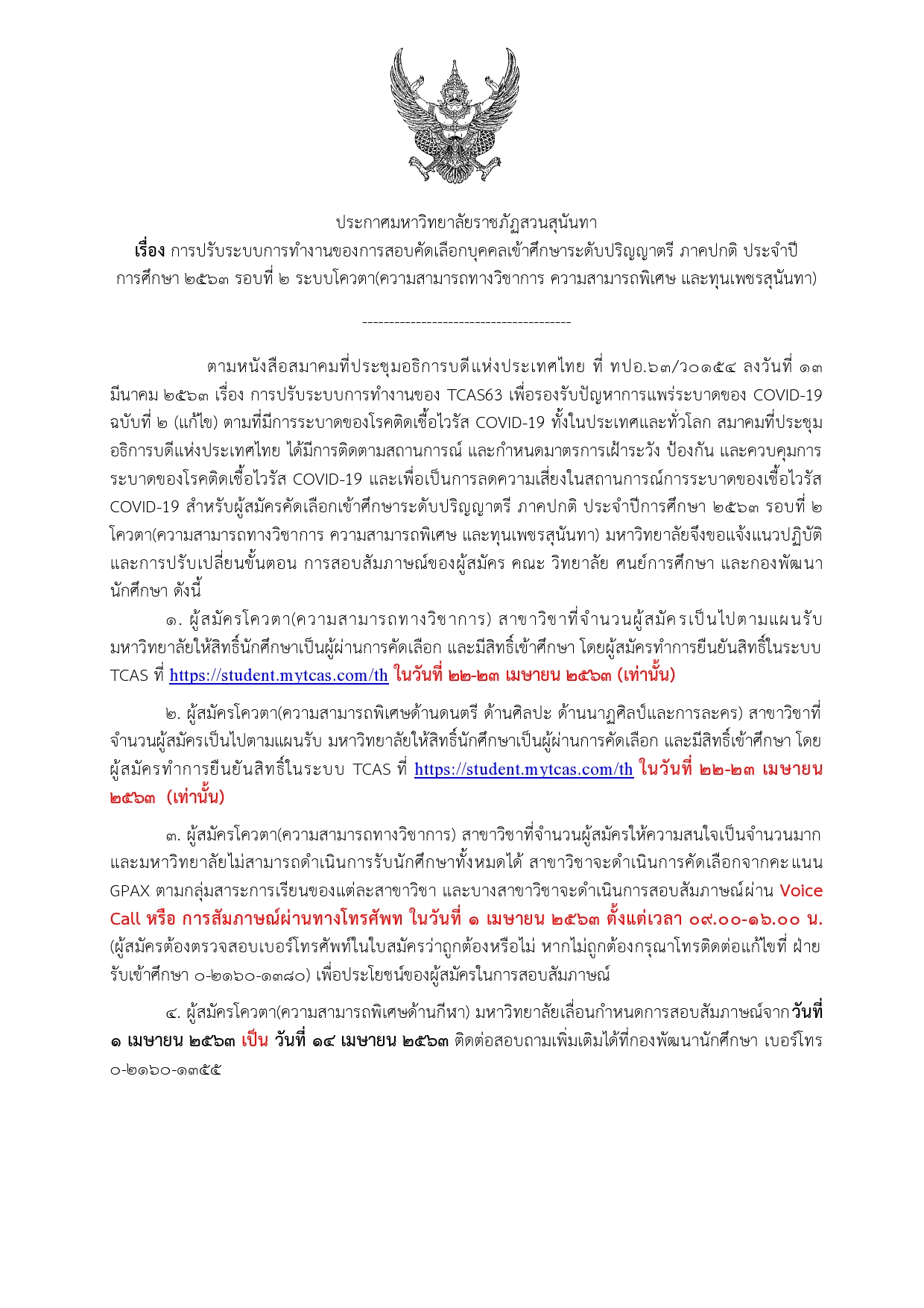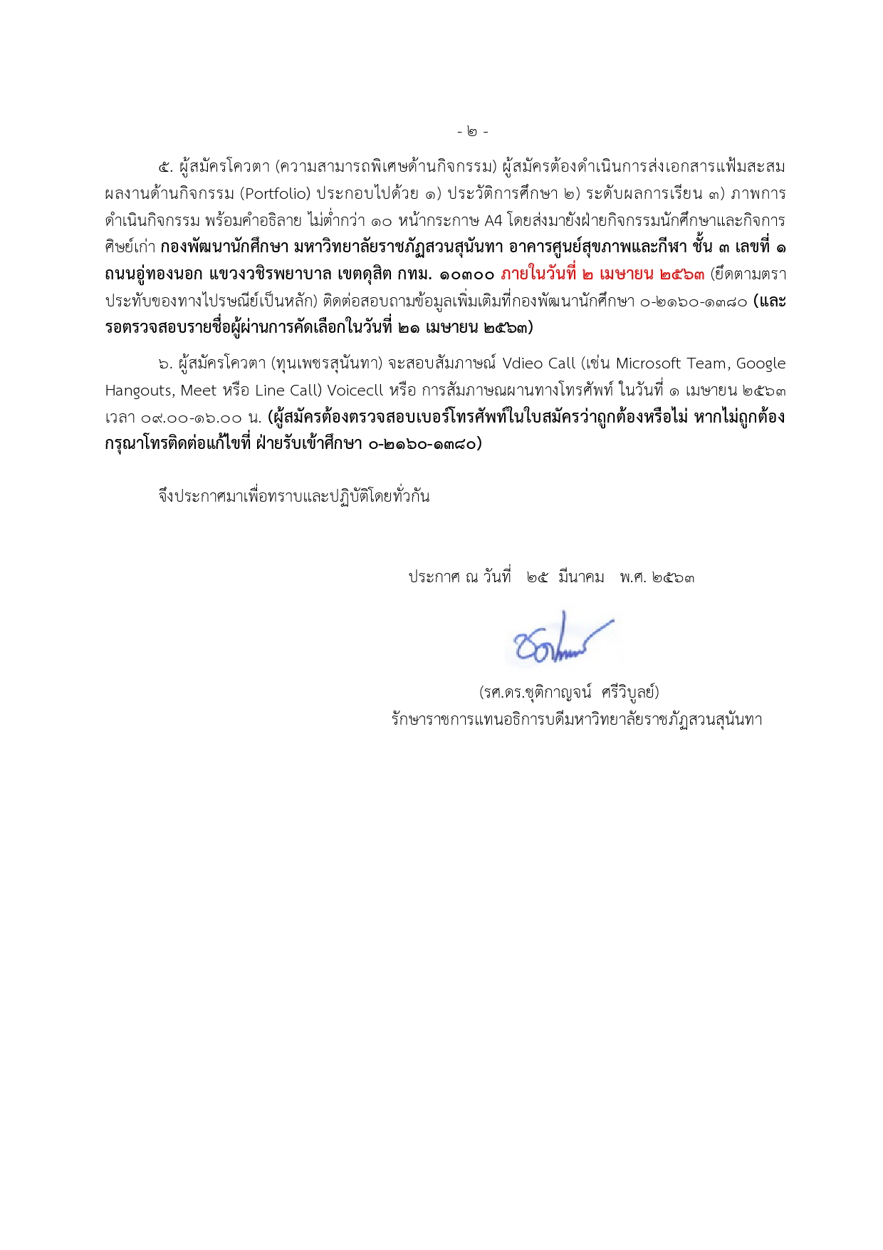 ประกาศ มหาวิทยาลัยราชภัฏสวนสุนันทา