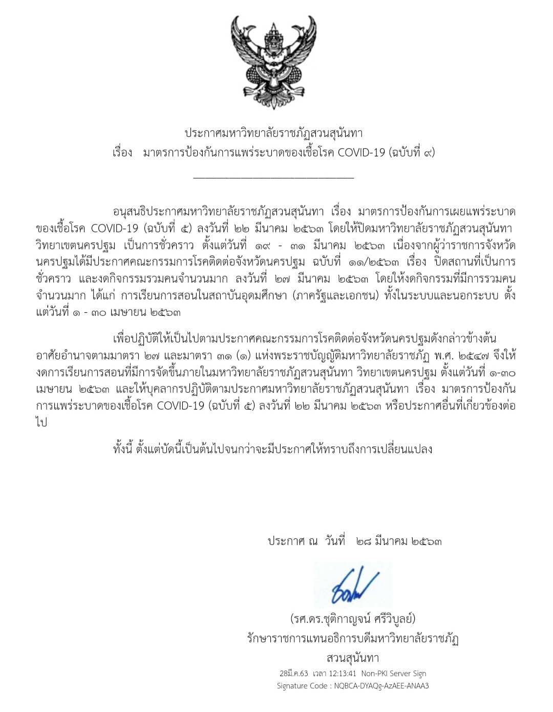ประกาศของมหาวิทยาลัย เรื่อง มาตรการป้องกันการแพร่ระบาดของเชื้อโรค
