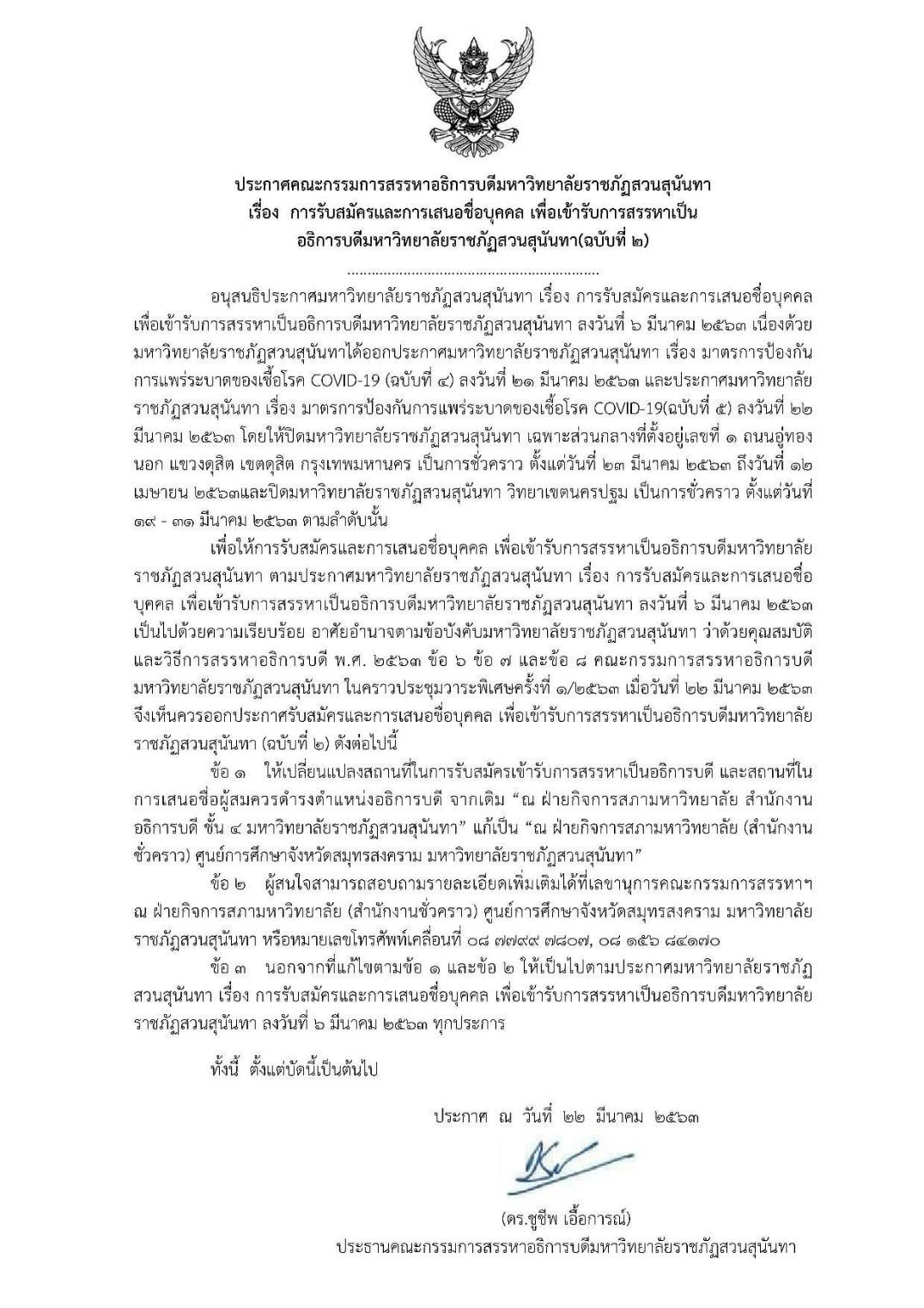 ประกาศคณะกรรมการสรรหาอธิการบดีมหาวิทยาลัยราชภัฏสวนสุนันทา