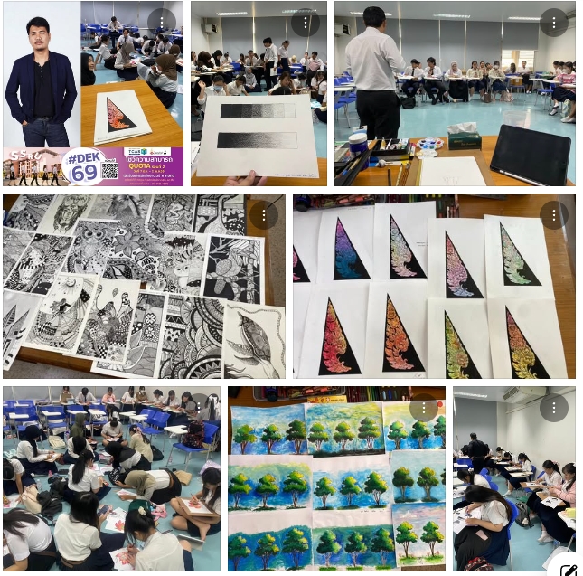 On March 17, 2026, Assistant Professor Jirawat Karnok, Head of the Painting Department, Faculty of Fine Arts, was invited by the Department of Primary Education, Faculty of Education, to be a guest speaker in the course ELI1304, Curriculum and Learning Management in Art at the Primary Level, for first-year primary education students. The lecture covered poster paint techniques, shading, and Thai art. He taught the course jointly with Dr. Weerayut Plailak, who is a lecturer in the subject.