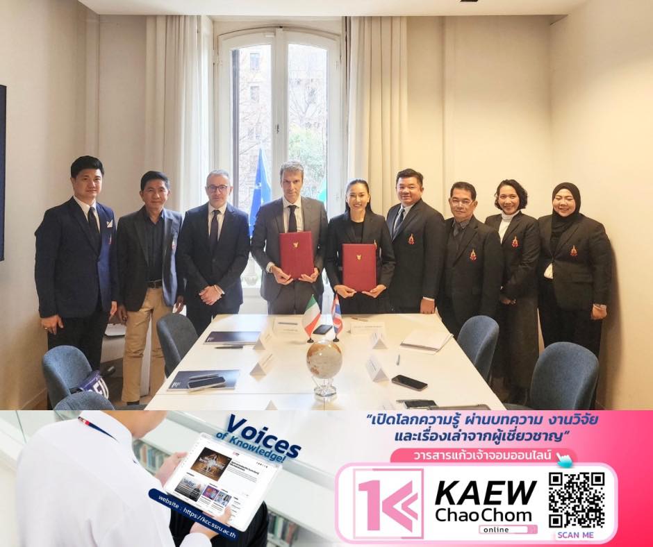 On February 17, 2026, a Memorandum of Understanding (MOU) was signed between Suan Sunandha Rajabhat University and the Italian Institute of Fashion Management in Milan, Italy, to develop fashion and creative industry education to meet international standards. The university administrators who participated in the signing ceremony included Assoc. Prof. Dr. Ruedech Kerdvichai, Chairman of the University Council; Assoc. Prof. Dr. Chutikarn Srivibul, President of Suan Sunandha Rajabhat University; Dr. Anek Permwongseni, Vice Chairman of the University Council; Ms. Tonfon Sapnirun, Assistant to the President for International Relations; Asst. Prof. Dr. Ekaphong Ingkuea, Dean of the Faculty of Fine Arts; Asst. Prof. Dr. Chanoknat Mayuso, Vice Dean for Administration; and Asst. Prof. Supawadee Chuisukha, lecturer in the Fashion Design and Styling Program, Faculty of Fine Arts.