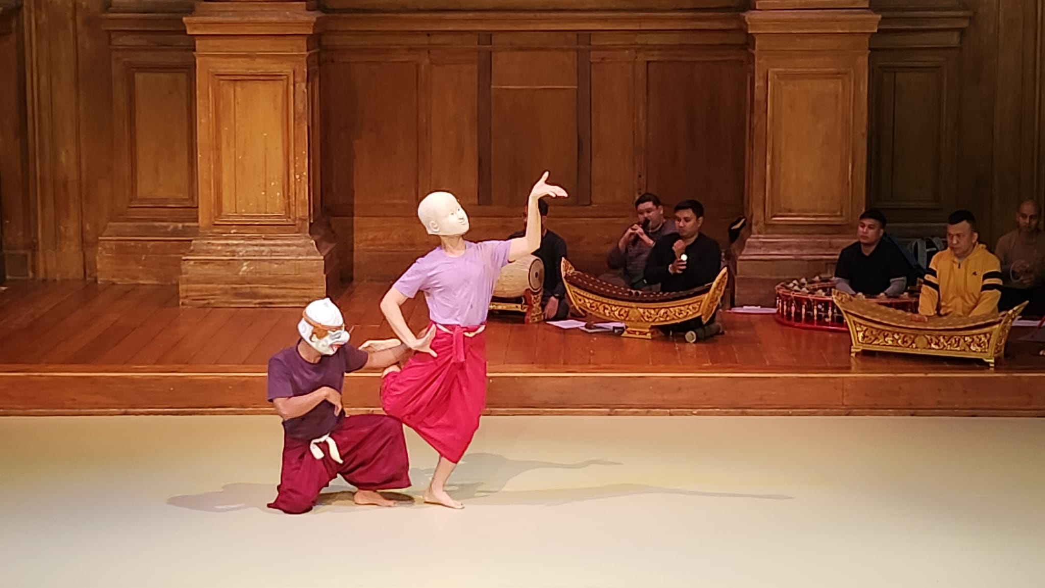 assistant teaching Khon to students at
