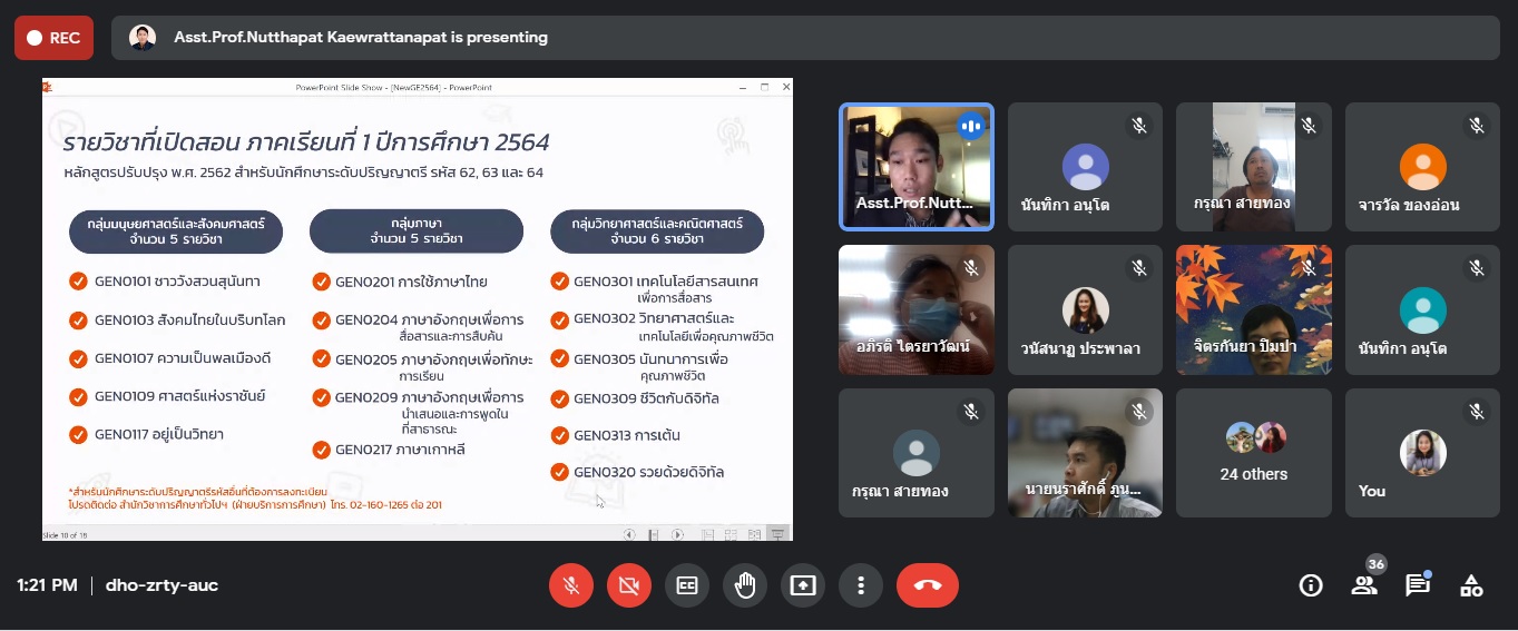 Deputy Dean for Administration and public relations Faculty of Fine and Applied Arts Participated in the meeting of the new GE teaching and learning management for the academic year 1/2564