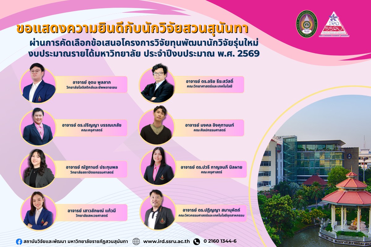 Congratulations to Assistant Professor Mongkol Ingkhutanon, a faculty member in the Fashion Design and Styling Program, Faculty of Fine Arts, for being selected for the Young Researcher Development Grant for the fiscal year 2026.