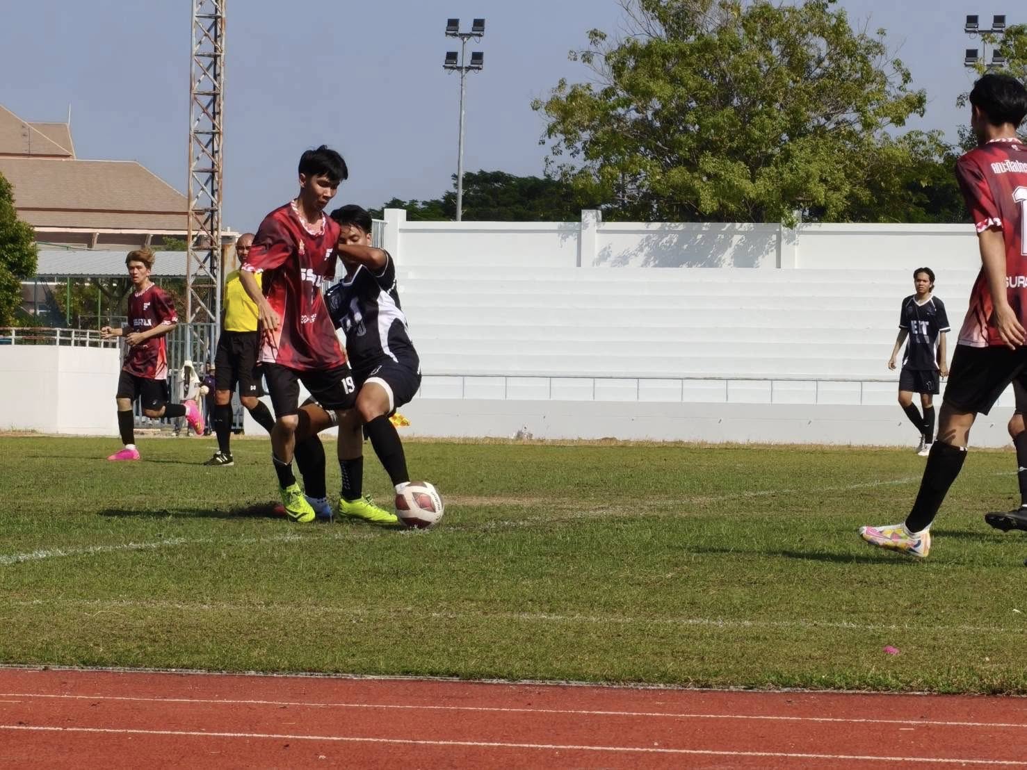 Student representatives from the Faculty of Fine Arts participated in the first round of the men's football competition at the 32nd Suan Sunandha Unity Sports Games on December 6, 2025, at the stadium of Suan Sunandha Rajabhat University, Nakhon Pathom Campus.