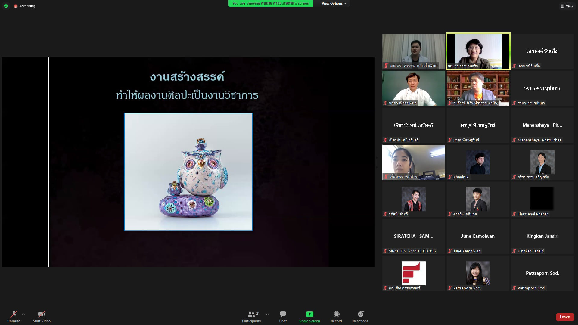 On 12 January 2022, Faculty of Fine and Applied Arts organize lectures in the Academic Enhancement Program Fiscal Year 2022, Topic : "Creative Works". This lecture was organized online via Zoom.
