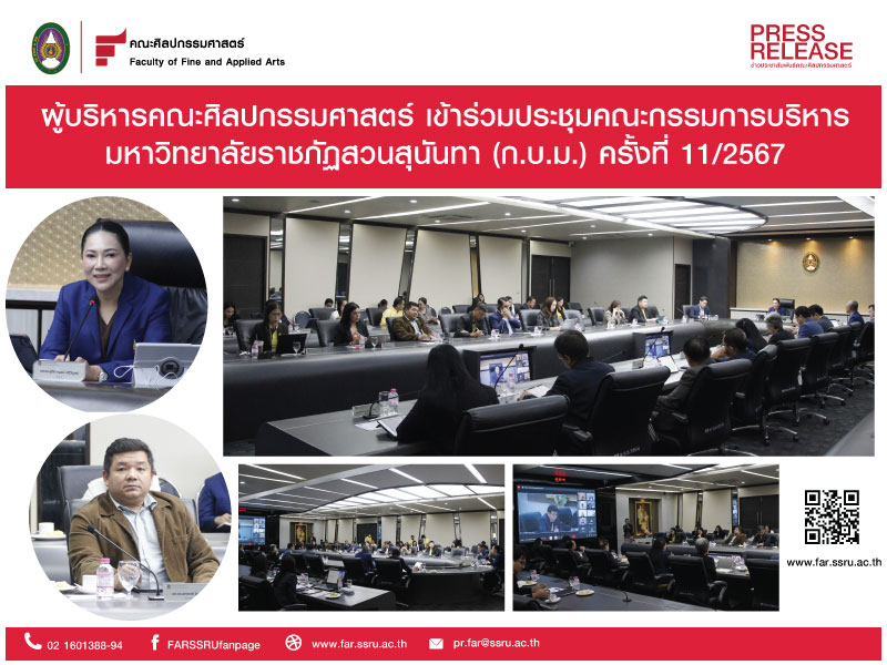On 11 November 2024 Dean of the Faculty of Fine and Applied Arts attended the meeting of the Suan Sunandha Rajabhat University Executive Committee (11/2024). The President of Suan Sunandha Rajabhat University presided over the meeting. It was held at the conference room, Building No.31, 5th floor.