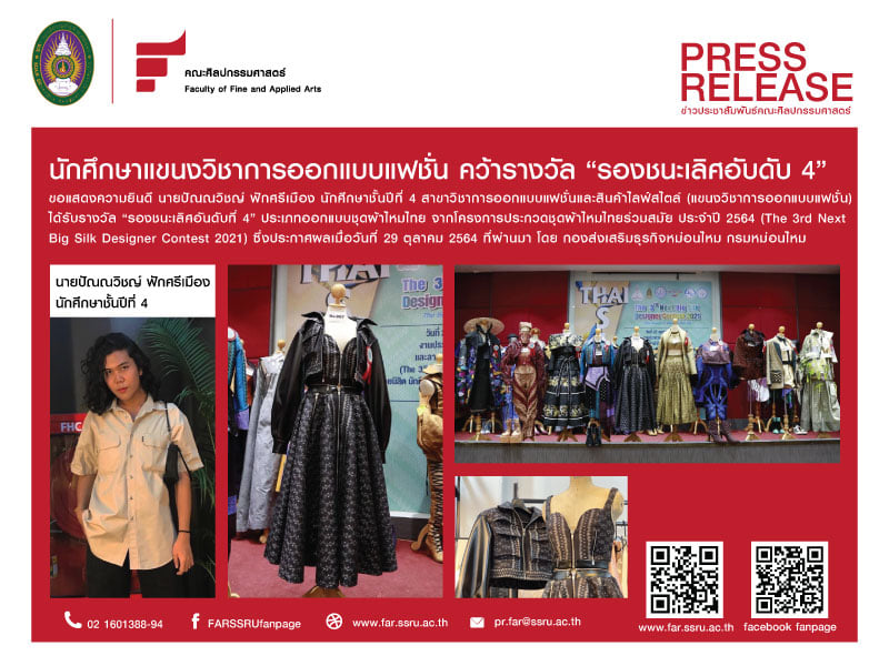 นักศึกษาแขนงวิชาการออกแบบแฟชั่น คว้ารางวัล "รองชนะเลิศอันดับ 4" ประกวดออกแบบชุดผ้าไหมไทย