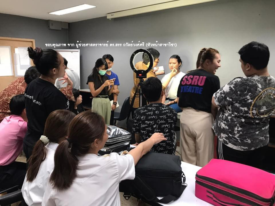 วันที่ 15-16 สิงหาคม 2563 สาขาวิชาศิลปะการแสดง แขนงวิชาศิลปะการละคร โดย ผู้ช่วยศาสตราจารย์ ดร.สรร ถวัลย์วงศ์ศรี หัวน้าสาขาวิชาและหัวหน้าแขนงวิชา จัด workshop : Drag Make-up เสริมความรู้และประสบการณ์ให้กับนักศึกษา วิทยากร โดย คุณอ่อง