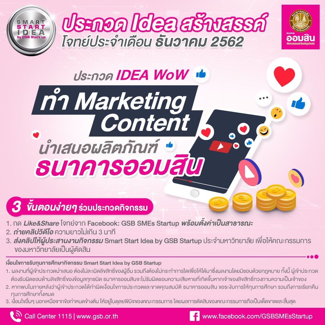 ขอประชาสัมพันธ์กิจกรรม Smart Start Idea by GSB startup