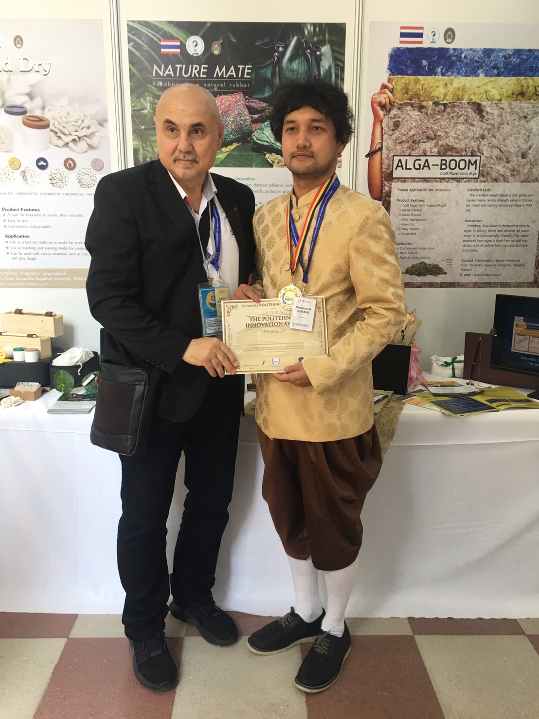 อาจารย์คณิน ไพรวันรัตน์ สาขาวิชาการออกแบบผลิตภัณฑสร้างสรรค์ คณะศิลปกรรมศาสตร์ มหาวิทยาลัยราชภัฏสวนสุนันทา คว้าเหรียญทองจากผลงานวิจัยนวัตกรรมใหม่ จากผลงาน Alga-Boom ในงาน European Exhibition of Creativity and Innovation : EUROINVENT 2019 ที่จัดขึ้น ณ Palace of Culture เมือง IASI – ประเทศ ROMANIA โดยได้รับรางวัลดังนี้