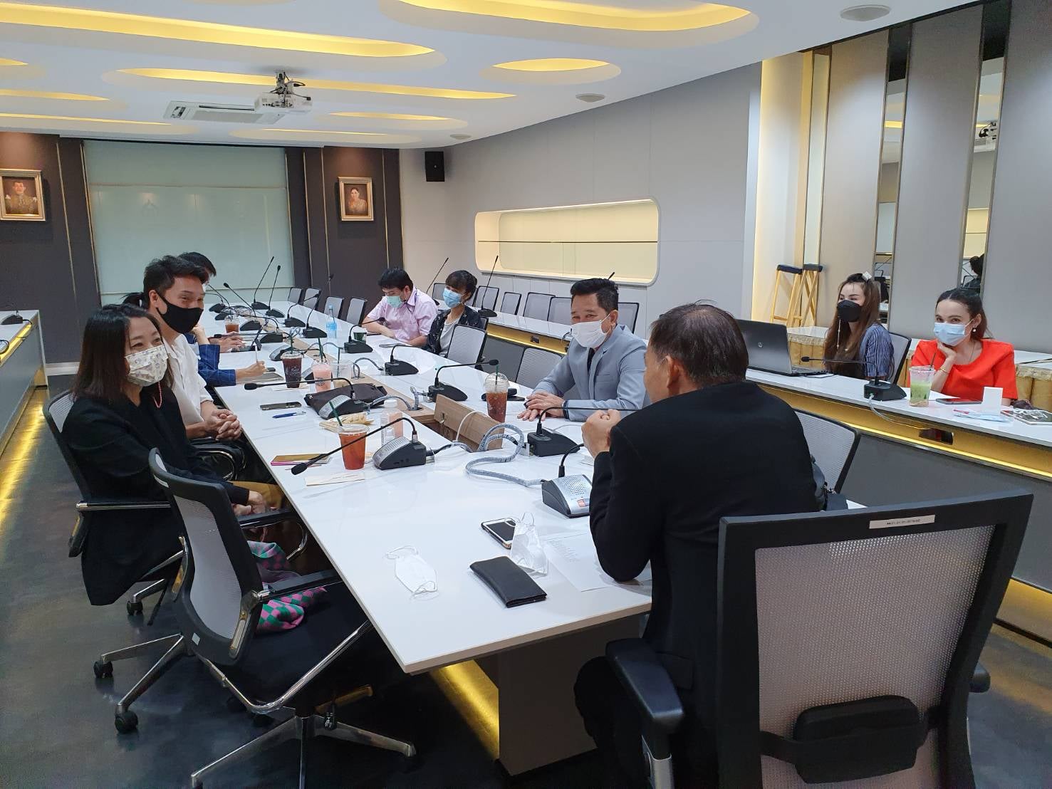 วันที่ 13 ธันวาคม 2564 คณะศิลปกรรมศาสตร์ โดย ผศ.ดร.สรร ถวัลย์วงศ์ศรี รองคณบดีฝ่ายวิชาการ พร้อมด้วย อ.ดร.ภัคคพร พิมสาร หัวหน้าแขนงวิชาศิลปะการละครและความเป็นผู้ประกอบการสร้างสรรค์ และ ผศ.ดร.กุสุมา เทพรักษ์ อาจารย์ประจำสาขาวิชา เข้าร่วมประชุมหารือกับ คณะวิทยาศาสตร์และเทคโนโลยี โดย ผศ.ดร.คมกฤช รัตตะมณี รองคณบดีฝ่ายกิจการนักศึกษา พร้อมด้วย อ.ธนาเดช โพธิ์ศรี หัวหน้าสาขาวิชาวิทยาศาสตร์การกีฬาและสุขภาพ และคณาจารย์ในสาขาวิชาฯ ประชุมหารือการบูรณาการรายวิชาทางศิลปะการแสดง เพื่อสร้างบุคลิกภาพให้กับนักศึกษาสาขาวิชาวิทยาศาสตร์การกีฬาและสุขภาพในการเป็น Unique Trainers ที่มีอัตลักษณ์เฉพาะตัว ทั้งนี้ นักศึกษาแขนงวิชาศิลปะการละครและความเป็นผู้ประกอบการสร้างสรรค์ ยังสามารถฝึกการเป็น Acting Coach ได้ผ่านโครงการนี้ ในการบูรณาการเนื้อหารายวิชาดังกล่าวซึ่งกันและกันจะสามารถสร้างศักยภาพในการเป็นมืออาชีพของทั้งสองคณะได้เป็นอย่างดี