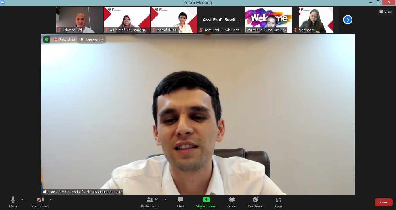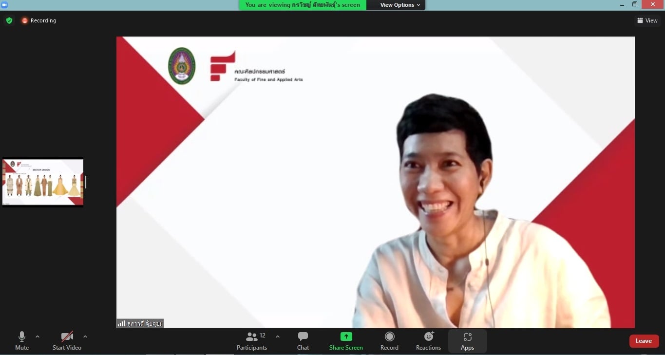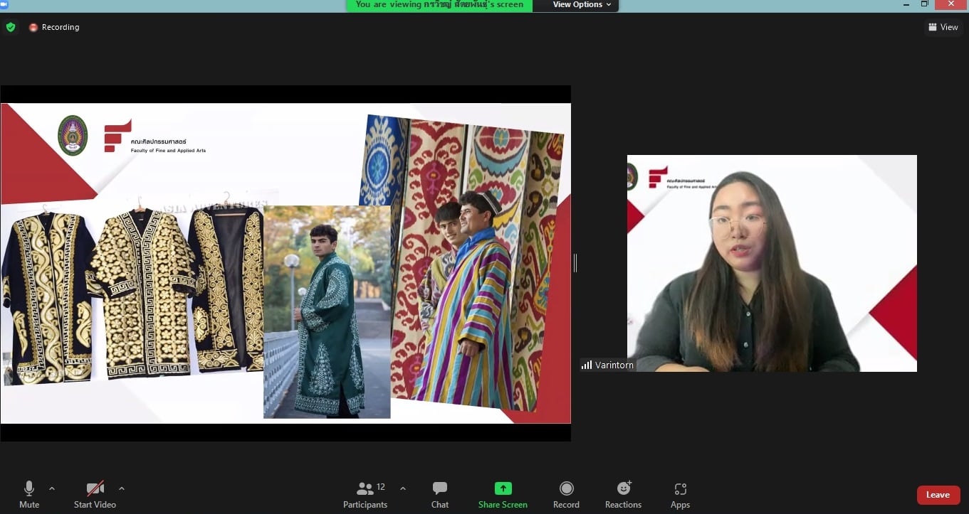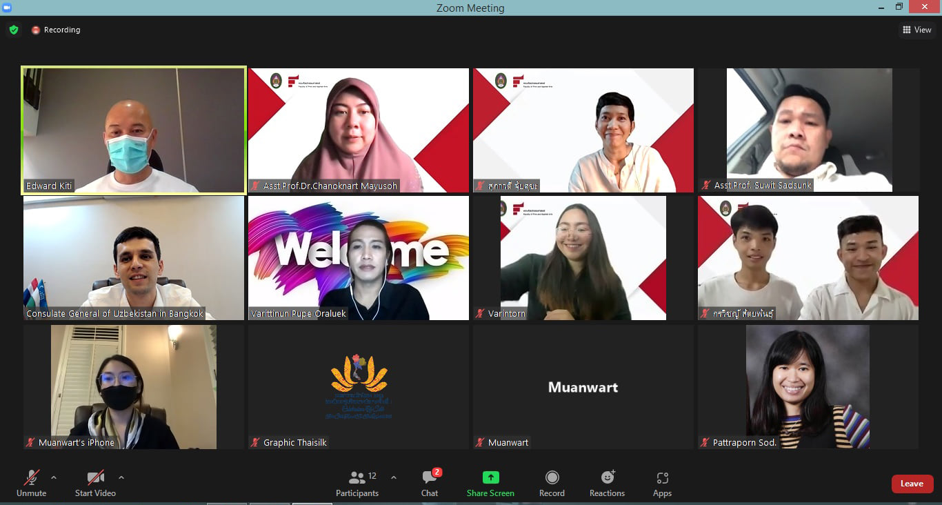 วันที่ 21 ตุลาคม 2564 อาจารย์และนักศึกษาสาขาวิชาการออกแบบเครื่องแต่งกาย ได้ประชุมร่วมกับตัวแทนจากสถานฑูตสาธารณรัฐอุซเบกิสถาน เพื่อปรึกษาหารือเกี่ยวกับการออกแบบชุดผ้าไหมให้มีเอกลักษณ์ตามวัฒนธรรมการแต่งกายของสาธารณรัฐอุซเบกิสถาน สำหรับร่วมโครงการมหกรรมผ้าไหม ไหมไทยสู่เส้นทางโลกครั้งที่ 11 โดยในครั้งนี้ ทางสาขาวิชาฯได้รับมอบหมายให้ออกแบบและตัดเย็บชุดมอบเป็นของขวัญให้กับท่านฑูตและภริยา โดยได้นำเสนอการออกแบบชุดผ้าไหมแบบออนไลน์ผ่านโปรแกรม Zoom Meeting