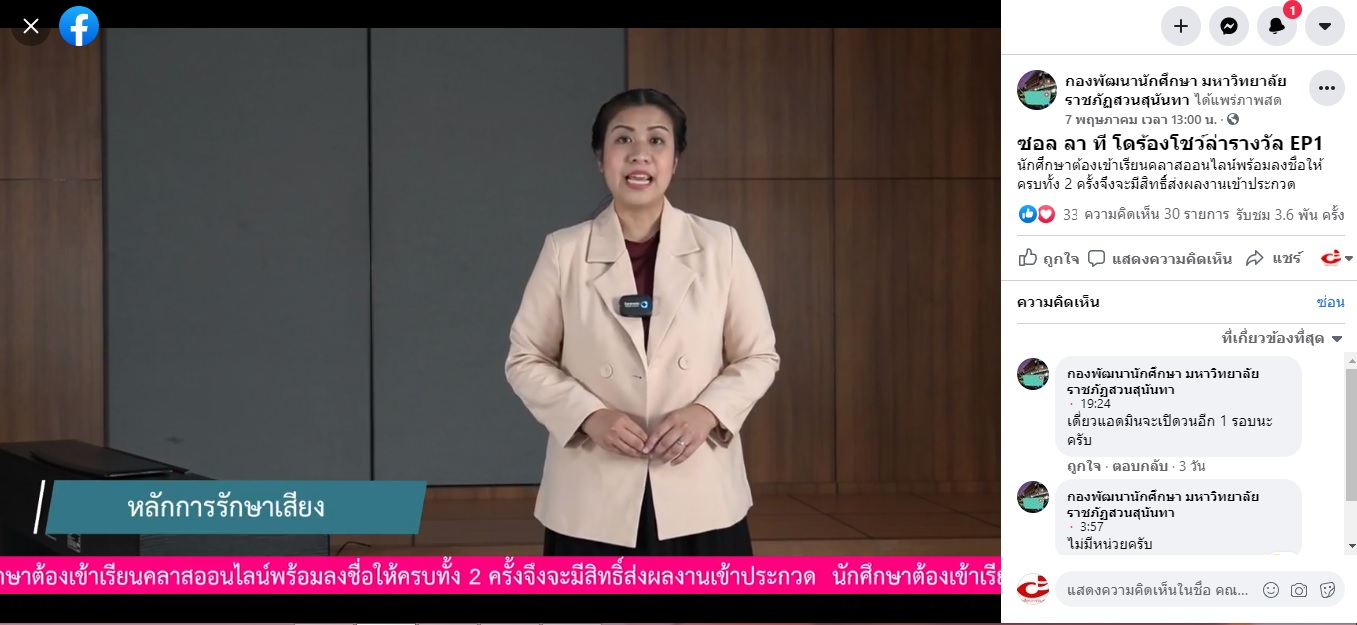 คลิปอบรมออนไลน์ผ่าน Facebook Fanpage กองพัฒนานักศึกษา