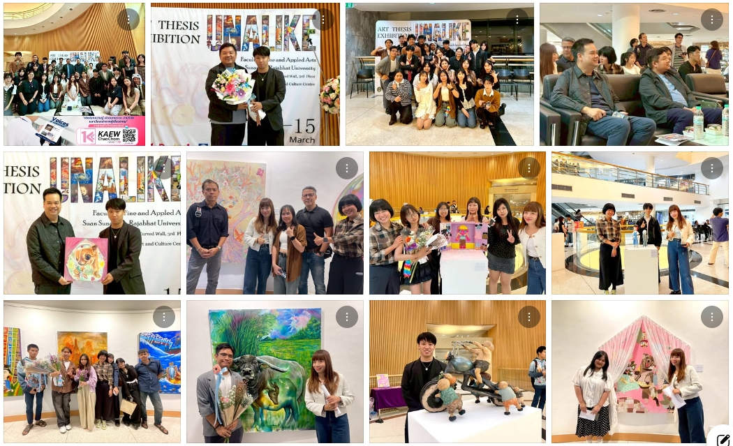 วันที่ 3 มีนาคม 2569 ภาพบรรยายกาศวันเปิดนิทรรศการศิลปนิพนธ์ของนักศึกษาชั้นปีที่ 4 สาขาวิชาจิตรกรรม คณะศิลปกรรมศาสตร์ โดยมี คุณทศพล พิชญโยธิน (ประธานเจ้าหน้าที่บริหาร (CEO) บริษัท กรุงเทพ อาร์ไอเอ แล็บ จำกัด) เป็นประธานในพิธี และ ผศ.ดร.เอกพงศ์ อินเกื้อ คณบดีคณะศิลปกรรมศาสตร์ ร่วมเป็นเกียรติในพิธีเปิดและชมผลงานของนักศึกษา ซึ่งนิทรรศการ “ตัวตนที่แตกต่าง“ (Unalike) เป็นส่วนหนึ่งของรายวิชาศิลปนิพนธ์ของนักศึกษาชั้นปีที่ 4 สาขาวิชาจิตรกรรม ที่นำเสนอผลงานศิลปะเพื่อสะท้อนตัวตน ความคิด และมุมมองเฉพาะของแต่ละคน ผ่านกระบวนการคิด วิเคราะห์ สังเคราะห์ และสร้างสรรค์อย่างเป็นอิสระ แม้แต่ละคนจะมีมุมมองความคิดที่แตกต่างกัน รวมถึงผลงานแต่ละชิ้นก็มีความแตกต่างกันทั้งรูปแบบ กระบวนการทำงานที่หลากหลาย แต่เมื่อเราได้มาร่วมสร้างสรรค์นิทรรศการนี้ด้วยกัน กลับเกิดเป็นความกลมกลืน และเป็นอันหนึ่งอันเดียวกัน สะท้อนให้เห็นถึงความหลากหลายในความเป็นหนึ่งเดียวกัน