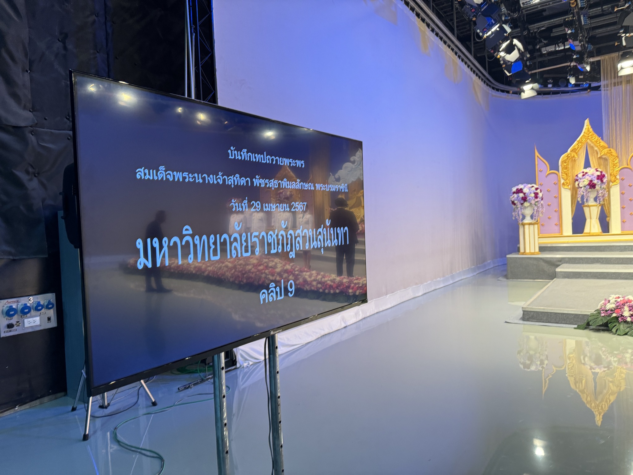 วันที่ 29 เมษายน 2567 รองศาสตราจารย์ ดร.ชุติกาญจน์ ศรีวิบูลย์ อธิการบดี พร้อมด้วยคณะผู้บริหาร มหาวิทยาลัยราชภัฏสวนสุนันทา ร่วมบันทึกเทปถวายพระพรสมเด็จพระนางเจ้าสุทิดา พัชรสุธาพิมลลักษณ พระบรมราชินี เนื่องในโอกาสมหามงคลเฉลิมพระชนมพรรษา (3 มิถุนายน) ณ สถานีวิทยุโทรทัศน์กองทัพบก ช่อง 5 เพื่อแสดงความจงรักภักดีและสำนึกในพระมหากรุณาธิคุณที่ทรงมีต่อพสกนิกรชาวไทย ทั้งนี้ ผศ.ดร.เอกพงศ์ อินเกื้อ คณบดีคณะศิลปกรรมศาสตร์ ได้เข้าร่วมการบันทึกเทปด้วย