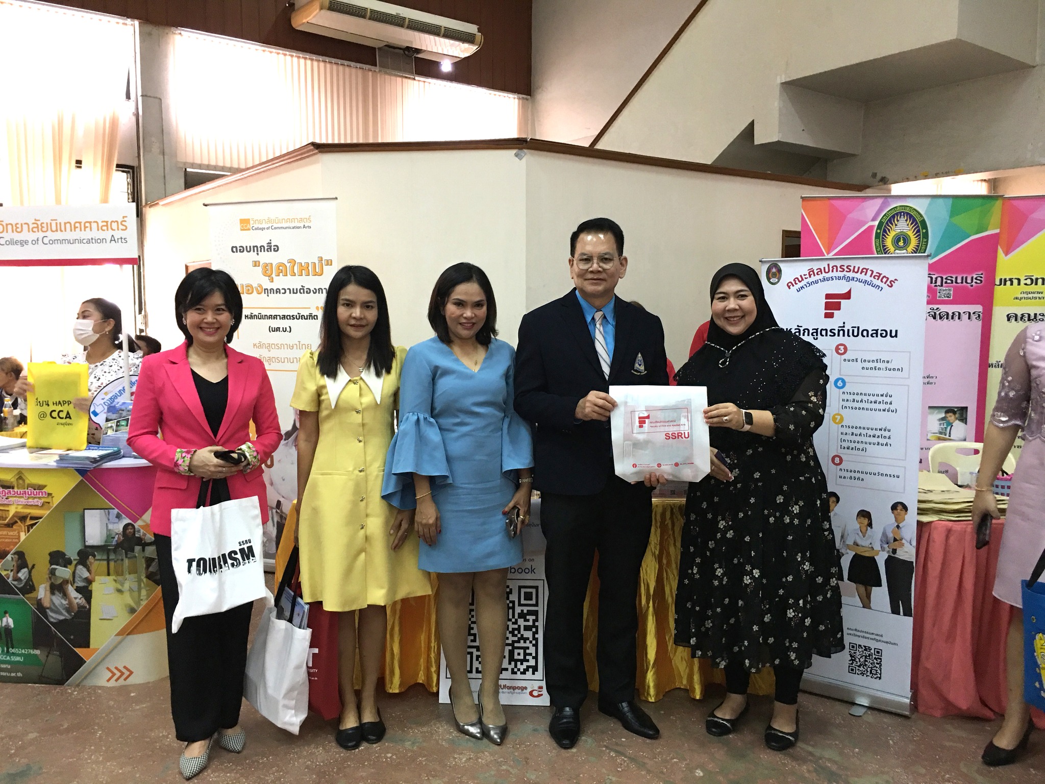 วันที่ 4 สิงหาคม 2566 คณะศิลปกรรมศาสตร์ เข้าร่วมกิจกรรมแนะแนวการศึกษาต่อ และการประชาสัมพันธ์ การรับสมัครนักศึกษาใหม่ 2567 ในกิจกรรม “เปิดโลกกว้างทางการศึกษา” ณ โรงเรียนบางกะปิ นำโดย อ.ดร.ธุวธิดา สุวรรณรัตน์ ผู้ช่วยอธิการบดีฝ่ายสื่อสารองค์กร มหาวิทยาลัยราชภัฏสวนสุนันทา พร้อมด้วย ผศ.ดร.ชนกนาถ มะยูโซ๊ะ รองคณบดีฝ่ายบริหาร และเจ้าหน้าที่คณะศิลปกรรมศาสตร์ ออกบูธให้คำแนะนำแก่นักเรียนระดับชั้นมัธยมศึกษาปีที่ 6 จำนวนกว่า 500 คนเข้าร่วมกิจกรรม ในการนี้ นายประจักษ์ ประจิมทิศ ผู้อำนวยการโรงเรียนบางกะปิ เป็นประธานกล่าวเปิดกิจกรรม