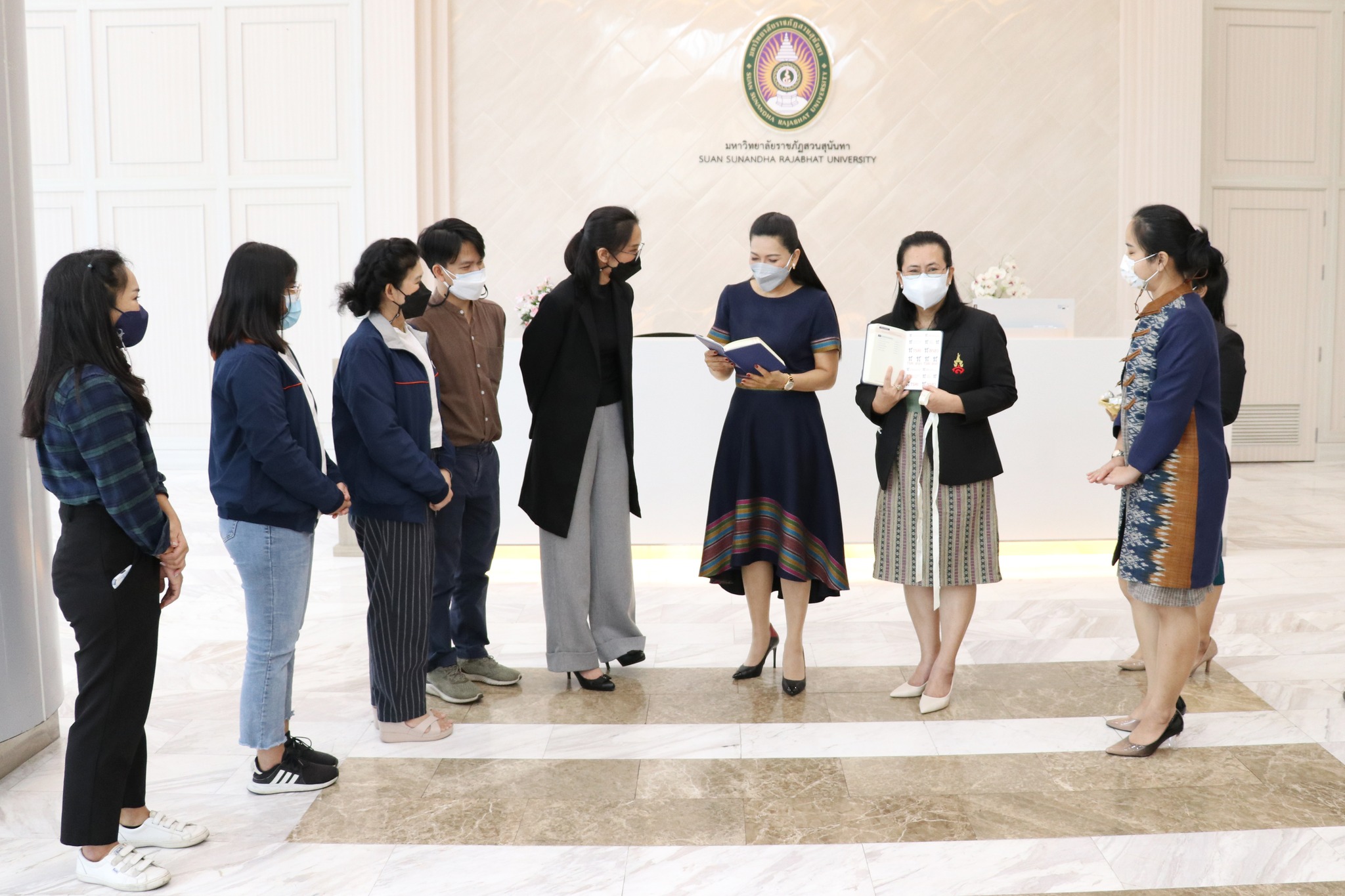 รองศาสตราจารย์ ดร.ชุติกาญจน์ ศรีวิบูลย์ อธิการบดีมหาวิทยาลัยราชภัฏสวนสุนันทา รับมอบหนังสือ จากนางสาวขวัญลดา จันทร์ทรงกลด รักษาการรองผู้อำนวยการ หน่วยงานข้อมูลและสำนักงานผู้อำนวยการปฏิบัติการด้านยุทธศาสตร์การสื่อสาร สำนักงานคณะกรรมการส่งเสริมวิทยาศาสตร์ วิจัยและนวัตกรรม (สกสว.) ซึ่งเป็นหนังสือจากผลงานวิจัยของ สกสว. เพื่อเป็นประโยชน์ต่อมหาวิทยาลัยราชภัฏสวนสุนันทาในการต่อยอดผลงานวิจัยที่สามารถใช้ประโยชน์ได้ ณ ห้องรับรอง อาคาร ๓๒ ชั้น 1