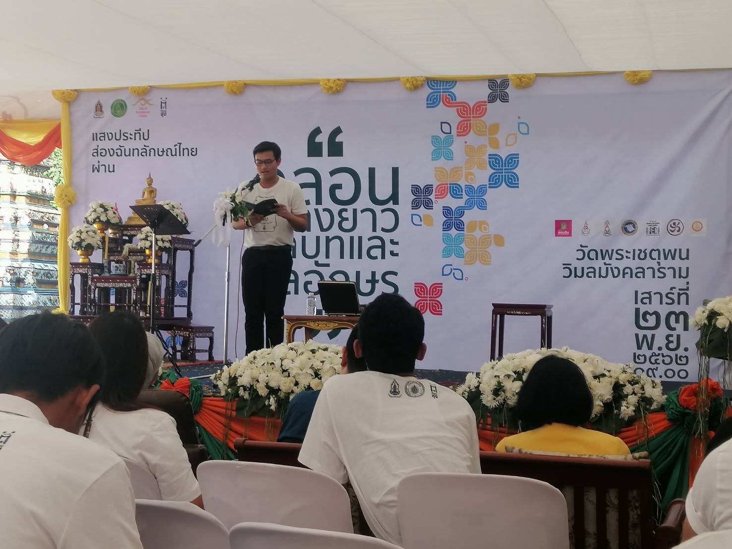 วันที่ 23 พฤศจิกายน 2562 นายกมลวัฒน์ ตรีเมฆ แลนายภูตะวัน ศิริรักษ์ นักศึกษาสาขาวิชาศิลปะการแสดง แขวงวิชานาฏศิลป์ไทย ได้รับรางวัล "ชมเชย" การประกวด การอ่านทำนองเสนาะ จารึกกลบทวัดโพธิ์ โครงการแสงประทีปส่องฉันทลักษณ์ไทย ผ่านกลอนเพลงยาวกลบทและกลอักษร ณ วัดพระเชตุพนวิมลมังคลาราม จัดโดย กรมส่งเสริมวัฒนธรรม กระทรวงวัฒนธรรม ร่วมกับ สถาบันไทยปัญญ์สุขและภาคีเครือข่าย