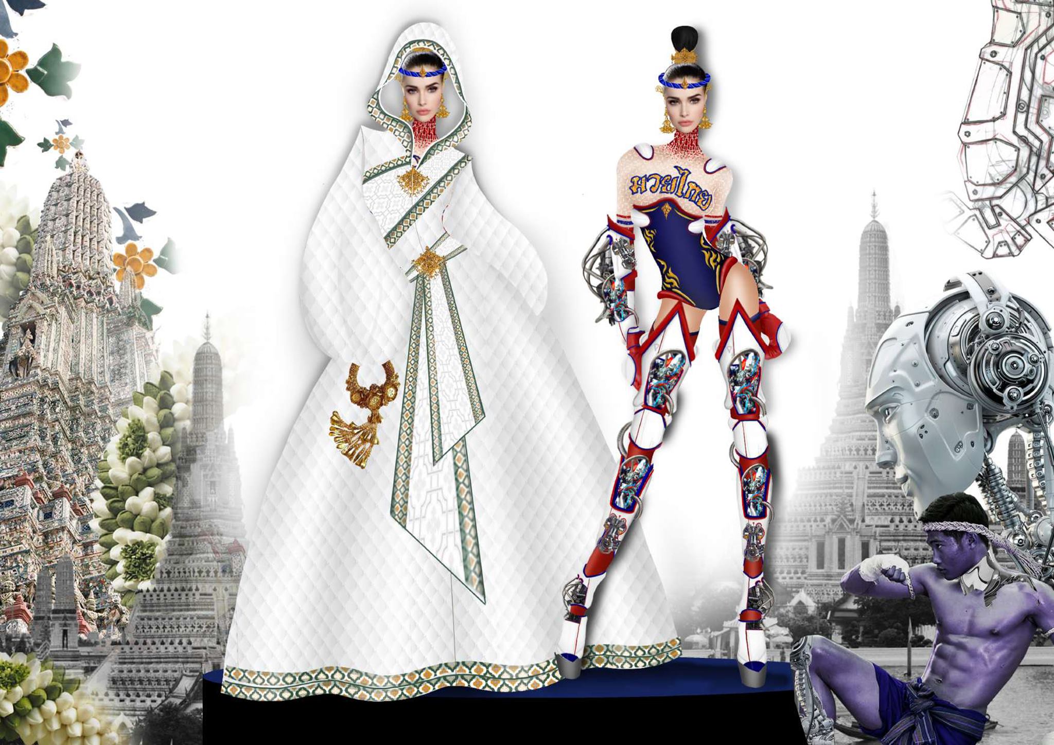 3 นักศึกษาแขนงวิชาการออกแบบแฟชั่น ได้ร่วมส่งผลงานเข้าประกวดออกแบบชุดประจำชาติในการประกวด