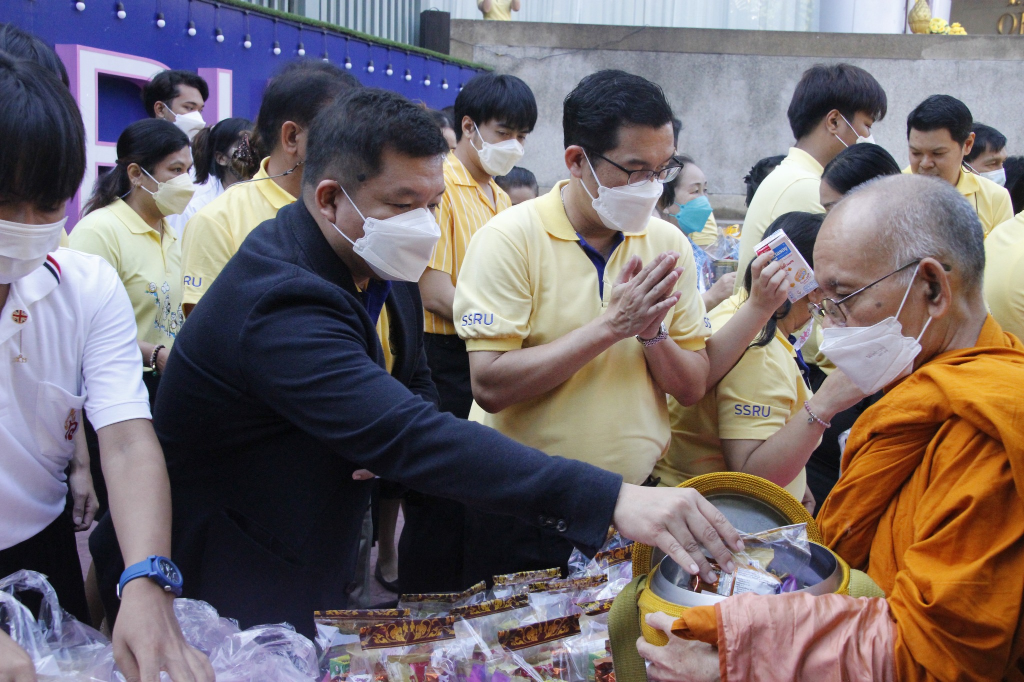 วันที่ 2 ธันวาคม 2565 ผศ.ดร.เอกพงศ์ อินเกื้อ คณบดี พร้อมด้วย รองคณบดีฝ่ายกิจการนักศึกษา บุคลากร และนักศึกษา คณะศิลปกรรมศาสตร์ เข้าร่วมกิจกรรมพิธีทำบุญตักบาตรเนื่องในวันคล้ายวันพระราชสมภพพระบาทสมเด็จพระบรมชนกาธิเบศร มหาภูมิพลอดุลยเดชมหาราช บรมนาถบพิตร 5 ธันวาคมณ บริเวณด้านหน้าสำนักงานอธิการบดี