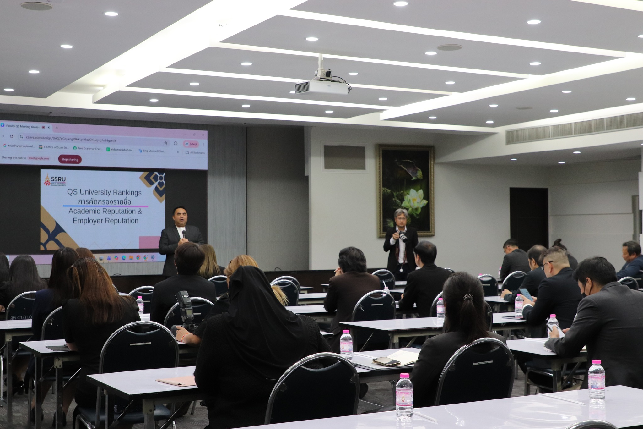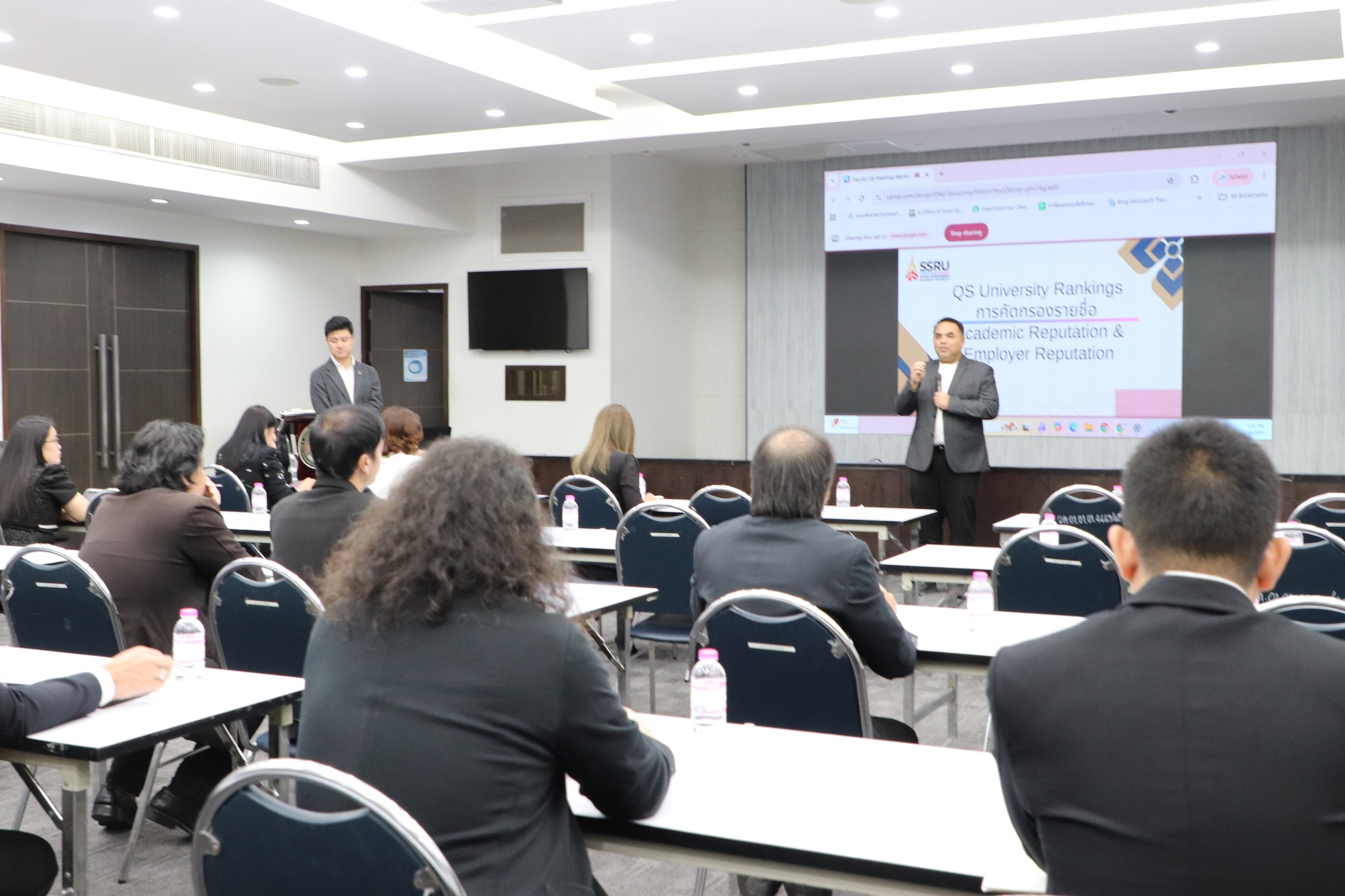 วันที่ 18 ธันวาคม 2568 ผศ.ดร.ชนกนาถ มะยูโซ๊ะ รองคณบดีฝ่ายบริหาร คณะศิลปกรรมศาสตร์ เข้าร่วมประชุมการขับเคลื่อน QS University Rankings การคัดกรองรายชื่อ Academic Reputation and Employer Reputation จัดโดยฝ่ายวิเทศสัมพันธ์ มหาวิทยาลัยราชภัฏสวนสุนันทา ซึ่งได้รับเกียรติจาก รศ.ดร.คมสัณ โสมณวัตร รองอธิการบดีฝ่ายบริหาร เป็นประธานกล่าวเปิดการประชุม และ อ.ต้นฝน ทรัพย์นิรันดร์ ผู้ช่วยอธิการบดีฝ่ายวิเทศสัมพันธ์ กล่าวรายงาน ณ ห้องประชุมช่อแก้ว อาคาร 31 ชั้น 5 มหาวิทยาลัยราชภัฏสวนสุนันทา