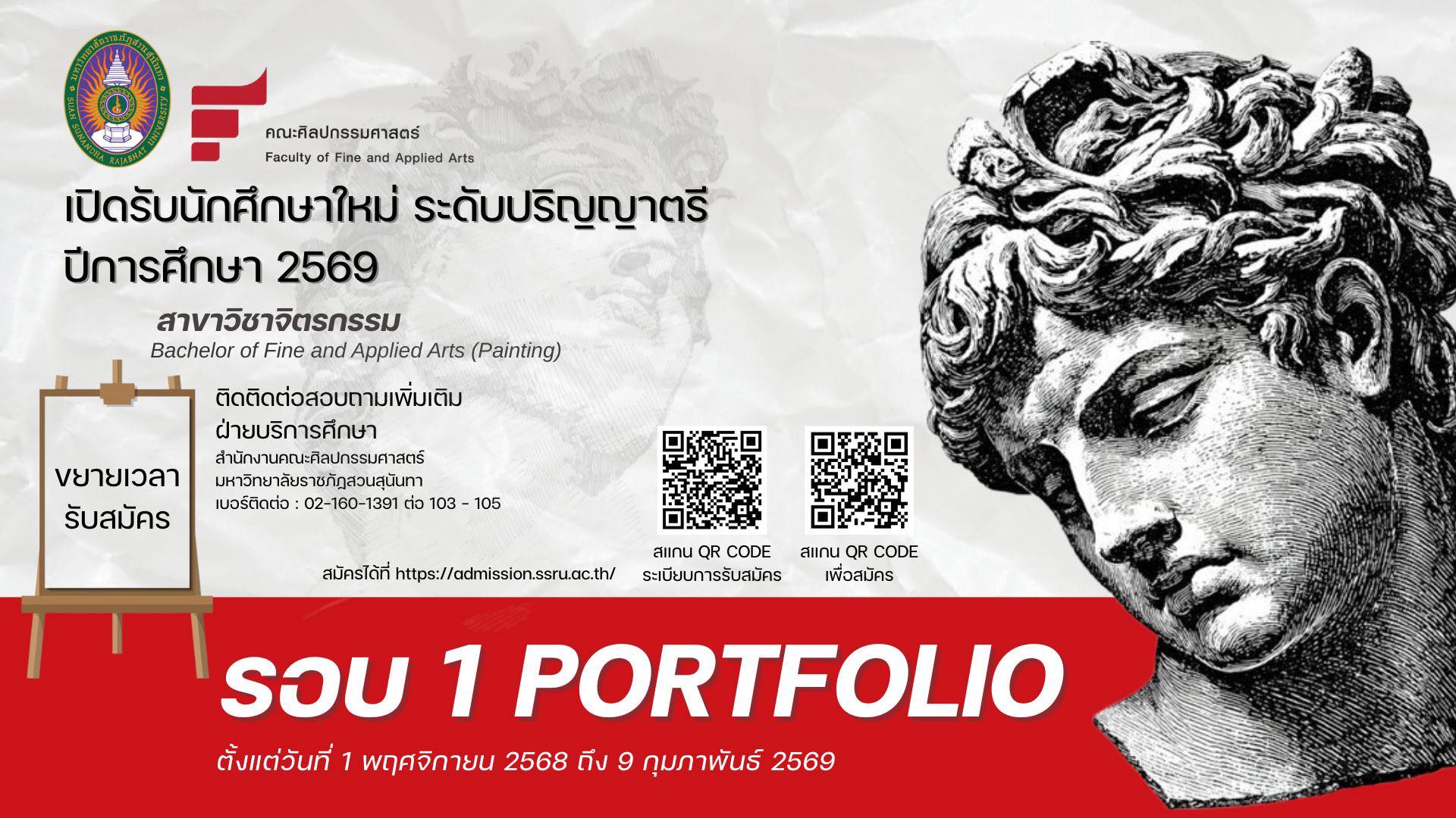 ขยายเวลา!!! ประกาศรับสมัครนักศึกษาใหม่ ปริญญาตรี รอบ Portfolio ประจำปีการศึกษา 2569