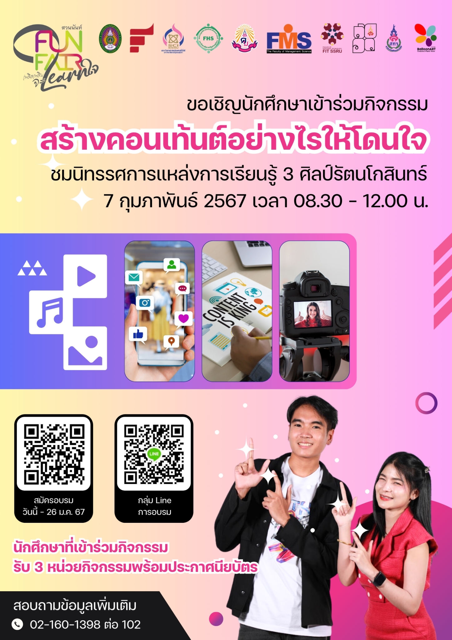 พิเศษ!! สำหรับนักศึกษาที่เข้าร่วมกิจกรรมอบรม จะได้รับ 3 หน่วยกิจกรรม [พร้อมประกาศนียบัตร]