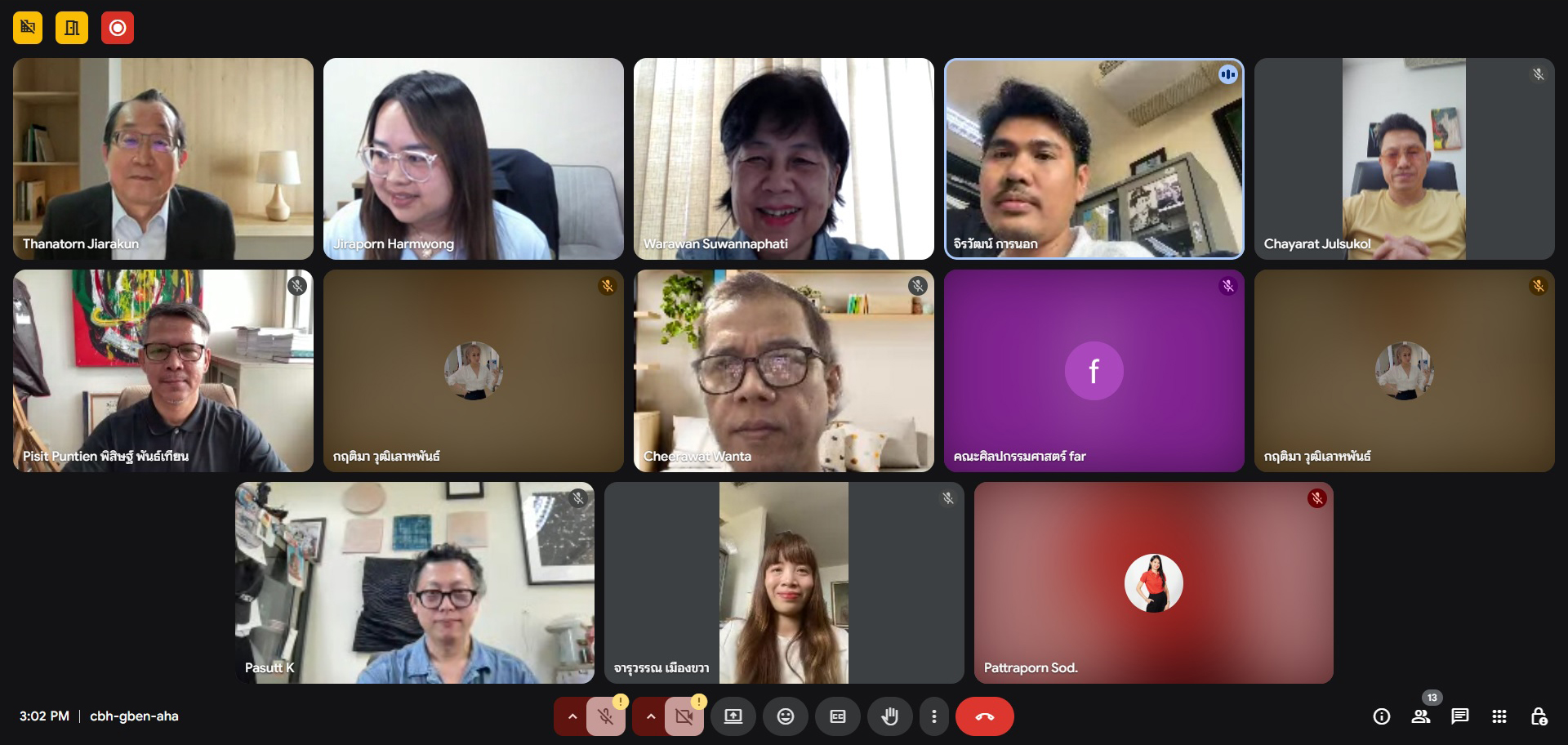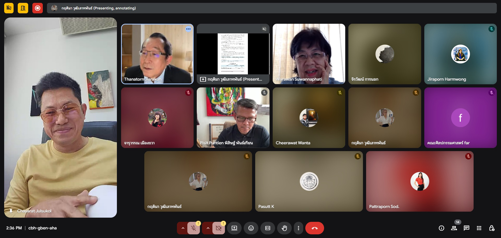 วันที่ 8 กรกฎาคม 2568 หลักสูตรศิลปกรรมศาสตรบัณฑิต สาขาวิชาจิตรกรรม คณะศิลปกรรมศาสตร์ เข้ารับการตรวจประเมินคุณภาพการศึกษาภายใน ระดับหลักสูตร ประจำปีการศึกษา 2567 จัดในรูปแบบออนไลน์ Google Meet โดยมีผู้ทรงคุณวุฒิ ได้แก่ อ.ดร.ธนาทร เจียรกุล (ประธานกรรมการ) อ.ดร.วราวรรณ สุวรรณผาติ (กรรมการ) อ.ชยารัฐ จุลสุคนธ์ (กรรมการ) และ น.ส.จิราพร ฮามวงศ์ (เลขานุการ)