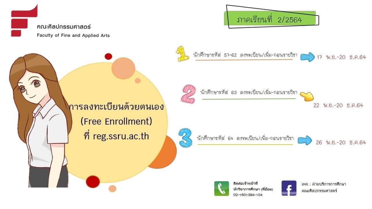 ประกาศกำหนดการลงทะเบียนด้วยตนเอง (Free Enrollment) ภาคเรียนที่ 2/2564
