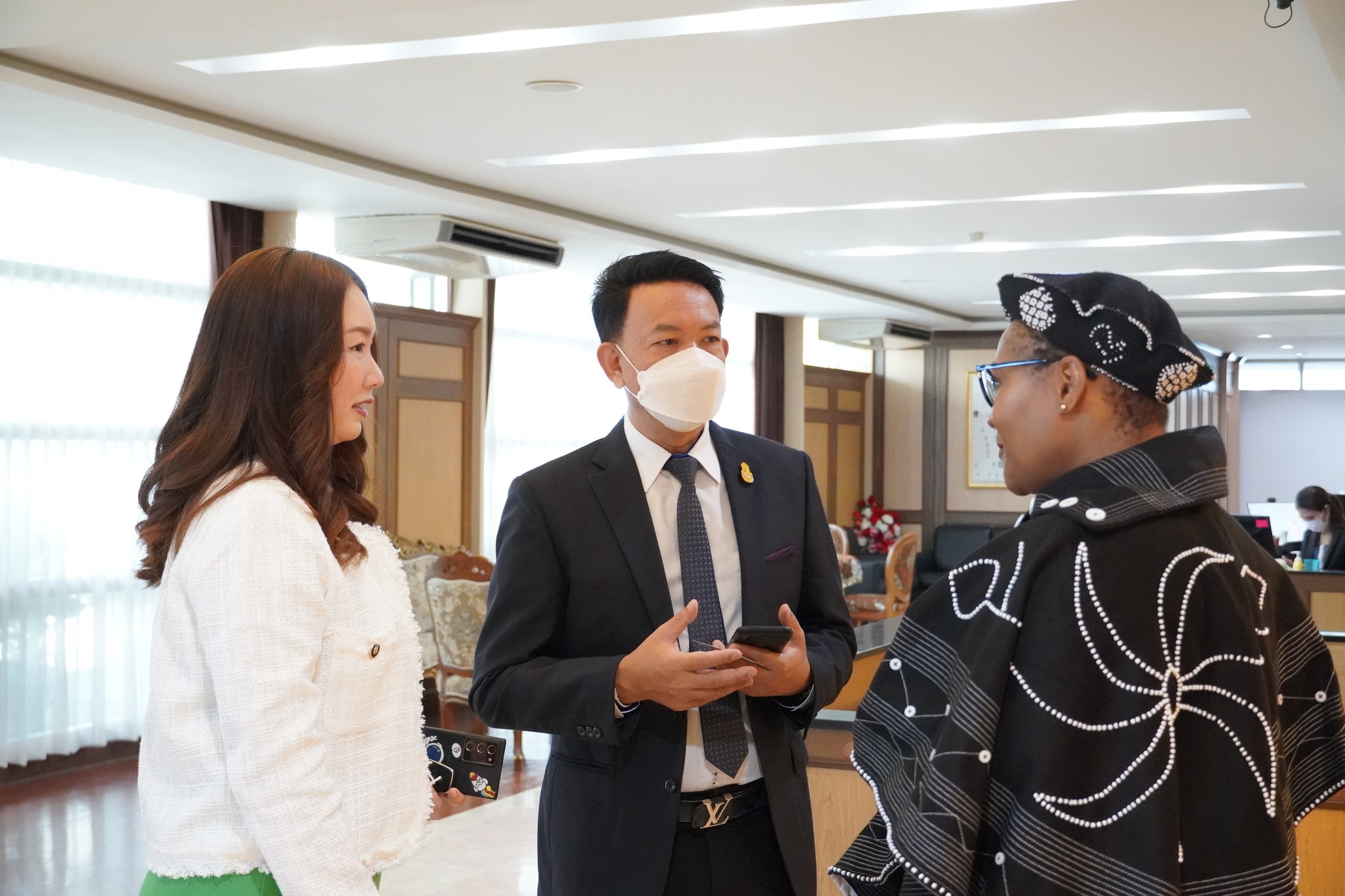 วันที่ 26 ตุลาคม 2565 ผศ.ดร.เอกพงศ์ อินเกื้อ คณบดีคณะศิลปกรรมศาสตร์ พร้อมด้วย ผศ.ดร.มณิศา วศินารมณ์ หัวหน้าแขนงวิชานาฏศิลป์ไทย และผศ.ดร.ผกามาศ จิรจารุภัทร เข้าร่วมต้อนรับ Mrs. Thobeka Dlamini อุปทูตรักษาราชการสถานเอกอัครราชทูตแอฟริกาใต้ และนายเทพบันลือ จัดกระบวนพล เจ้าหน้าที่ฝ่ายข้อมูลประจำสถานเอกอัครราชทูตฯ ณ อาคารสำนักงานอธิการบดี เพื่อหารือการจัดกิจกรรมร่วมกันระหว่างสถานเอกอัครราชทูตและมหาวิทยาลัยราชภัฏสวนสุนันทา